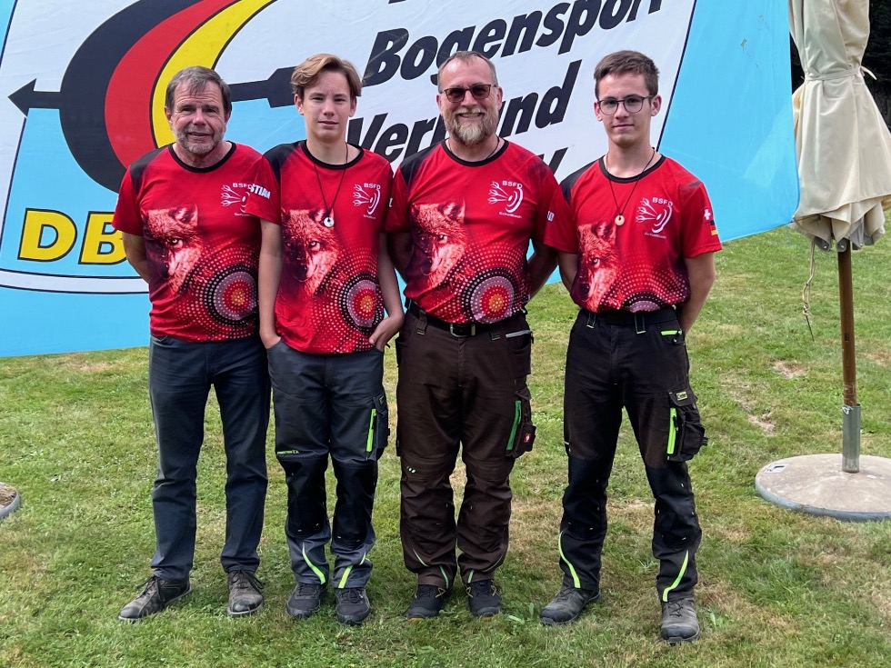 14 Tage später hat dann der Deutsche Bogensportverband zu seiner Deutschen Meisterschaft für die Bogenschützen, die kein Visier benützen, eingeladen in Bersenbrück in Niedersachsen. Hierfür haben sich Dieter Fischer und Jürgen Hässler qualifiziert. Dieter Fischer belegte den zweiten Platz in der Kategorie Herren Kompositbogen. Jürgen Hässler belegte den siebten Platz in der Kategorie Ü50 Langbogen.